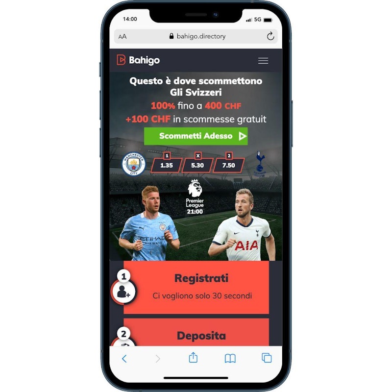 Bahigo è un sito scommesse in Svizzera che si presenta molto bene, ha un ottima grafica ed è molto intuitivo, pertanto per te sarà facile scegliere le tue scommesse. Il palinsesto è ricco di eventi sia in ambito antepost che live, con molti live streaming e statistiche che ti aiuteranno a visionare l'andamento del tuo match di riferimento.