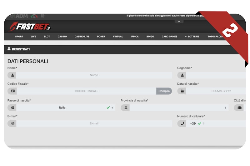 Una volta che avrai cliccato verrai rimandato sul modulo di registrazione di Fastbet.it.