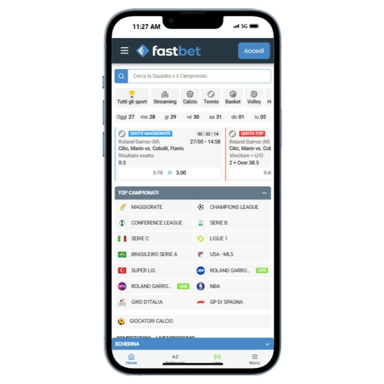 Se sei amante delle scommesse live, come noi, potrai aspettarti da Fastbet una decente sezione live con moltissime discipline sportive, come per esempio calcio, tennis, basket, pallavolo, baseball, e molti altri.