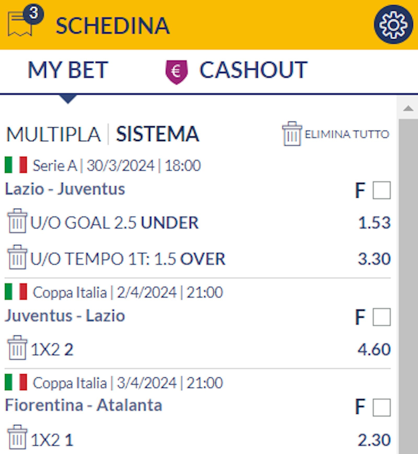 | Eventi in schedina | 3 |
