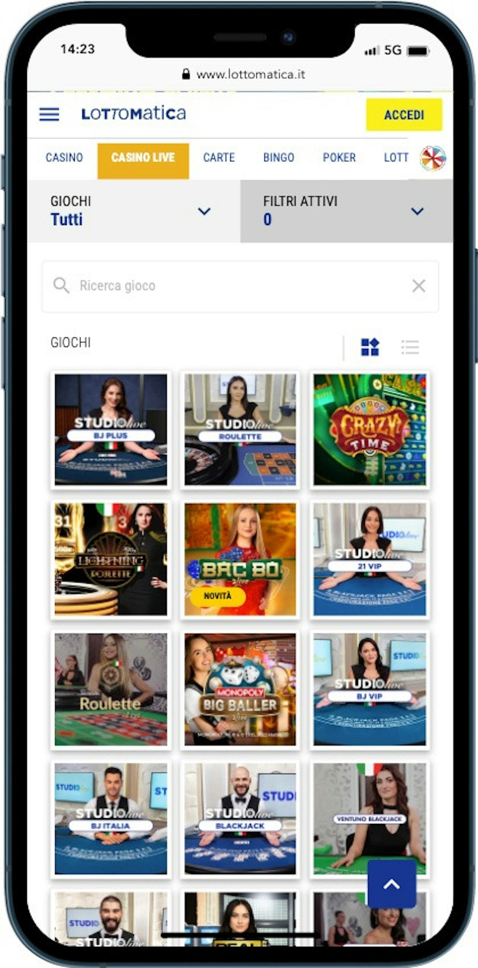 Oltre alle tantissime slot machine, Lottomatica offre 12 sale per giocare al live casinò. Con il live casino di Lottomatica può rivivere le emozioni dei casinò di Venezia, Las Vegas o Sanremo, dalla comodità della tua poltrona di casa. I giochi messi a disposizione per giocare con dei veri croupier dal vivo sono Blackjack, Roulette, Baccarat, Poker e molti altri.