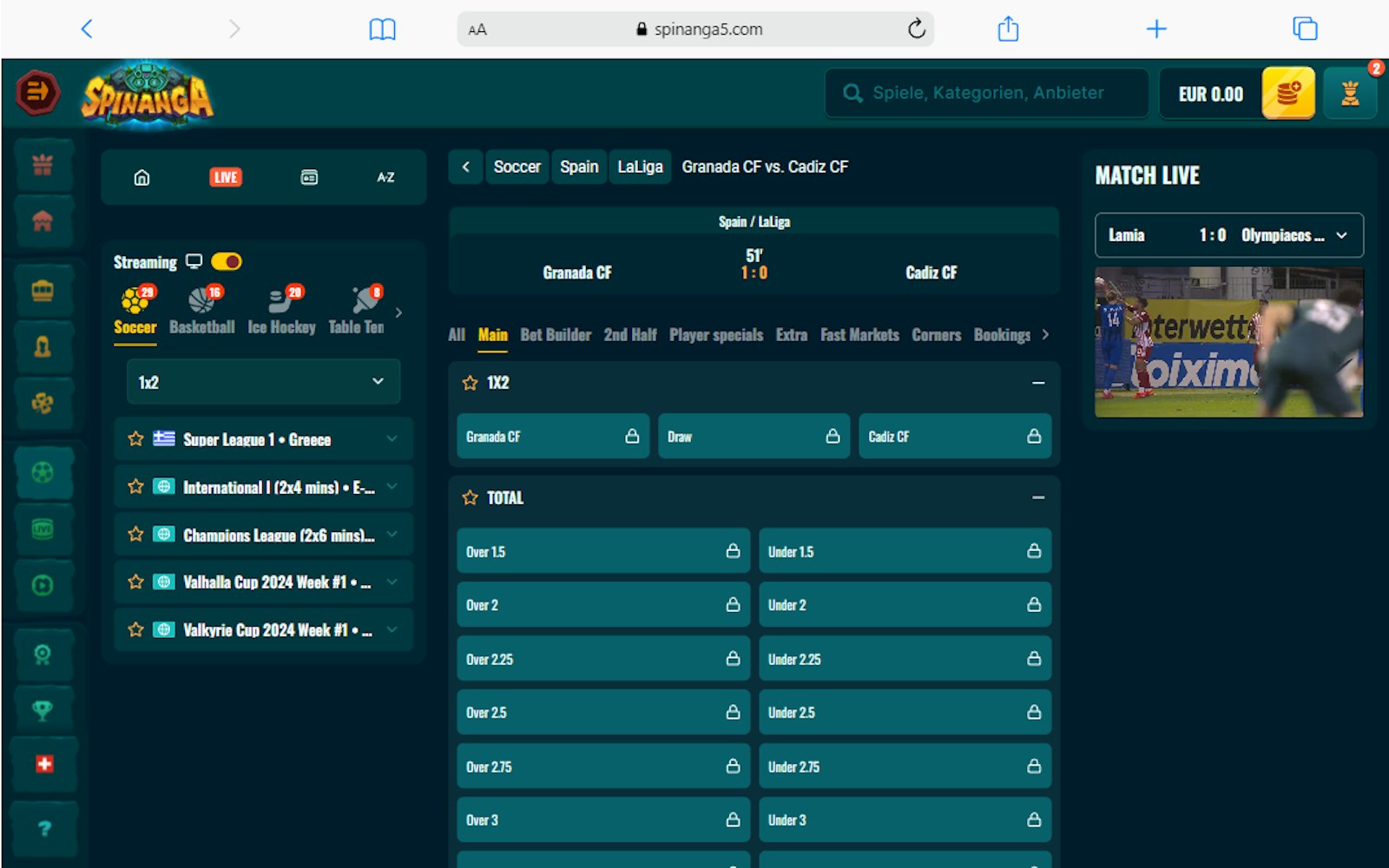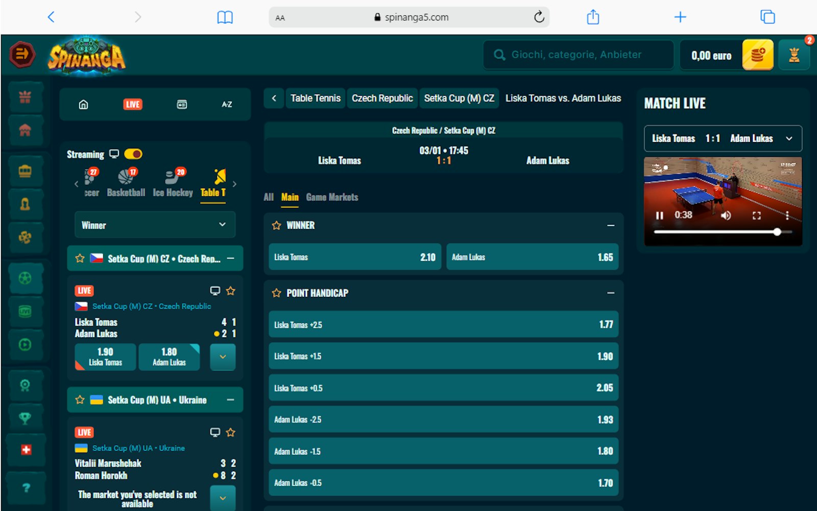 Sebbene la funzione di live streaming non copra molti match, la sua presenza arricchisce senza dubbio l'esperienza. Spinanga si conferma così come un bookmaker con una solida e coinvolgente sezione live.