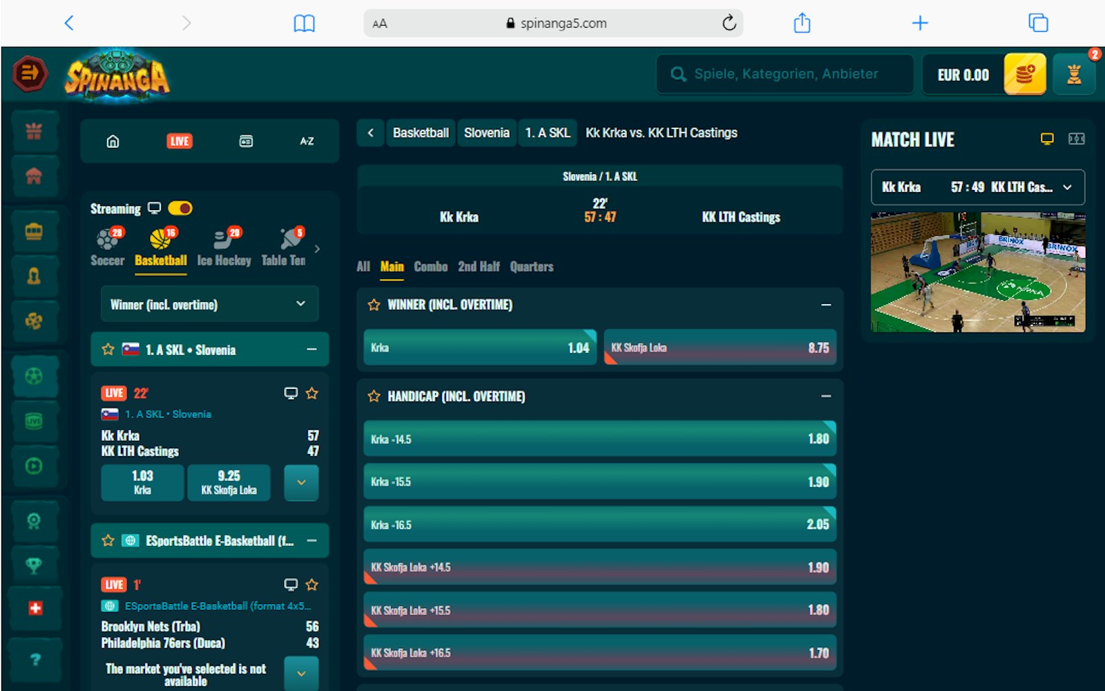 Nella sezione Scommesse Live di Spinanga, abbiamo goduto di un'esperienza positiva, piazzando scommesse in tempo reale con una certa facilità.