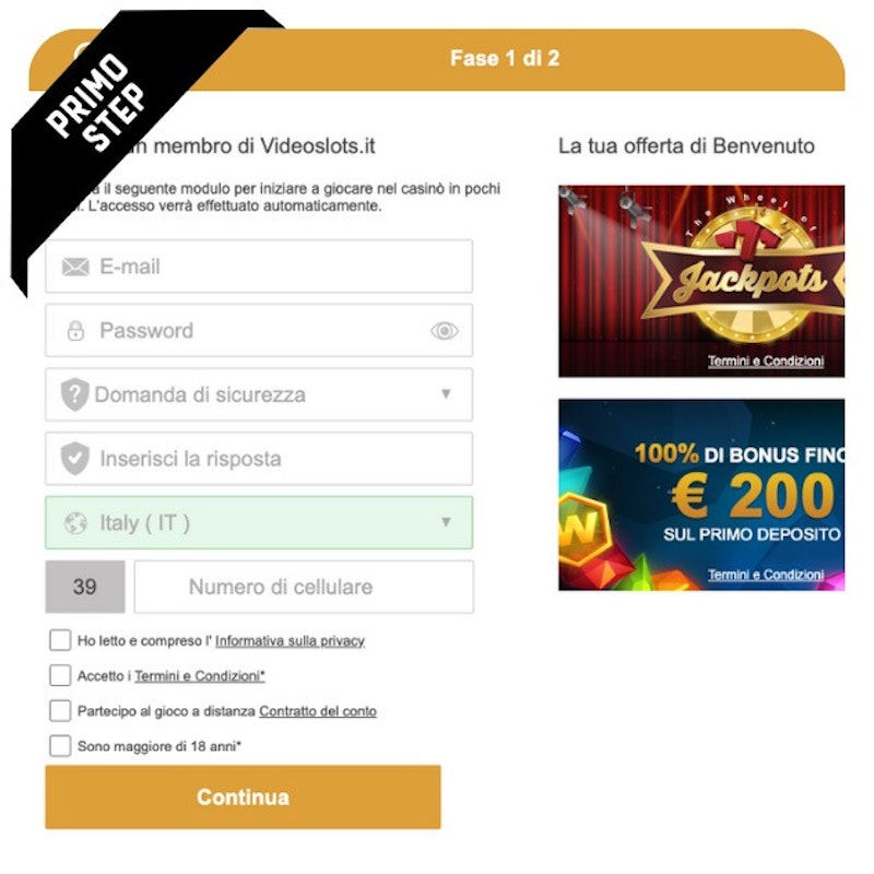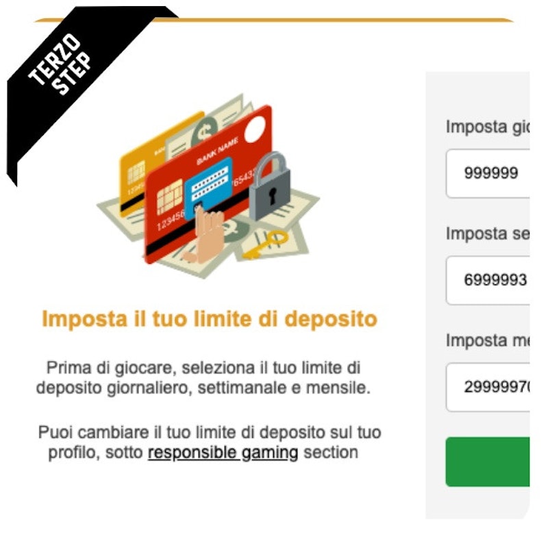 Al momento della registrazione è necessario effettuare immediatamente un deposito di almeno 10€!
