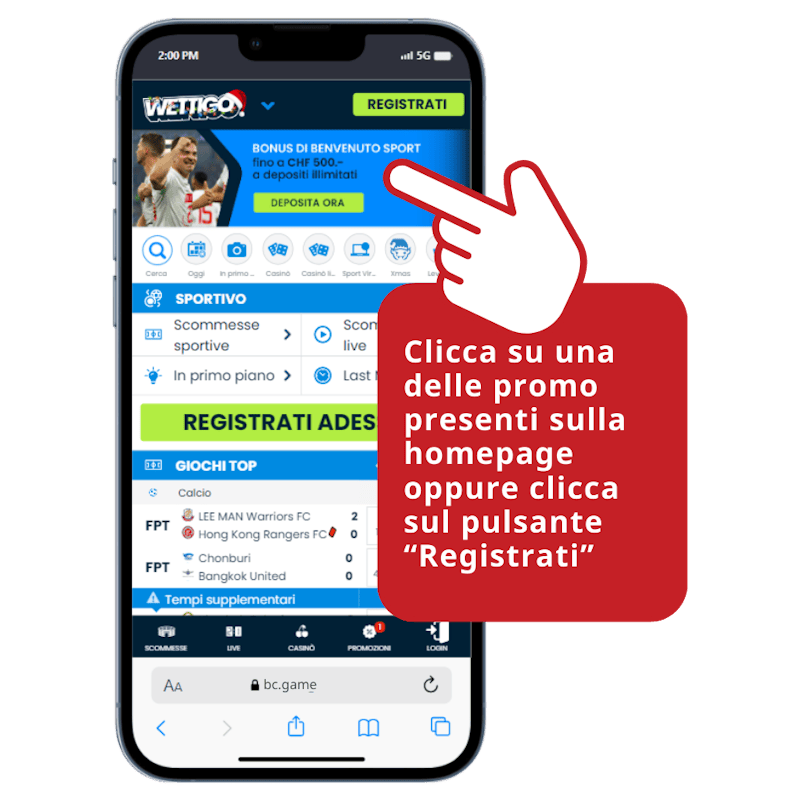 - Seleziona la promozione sulle scommesse sportive al momento del primo deposito.